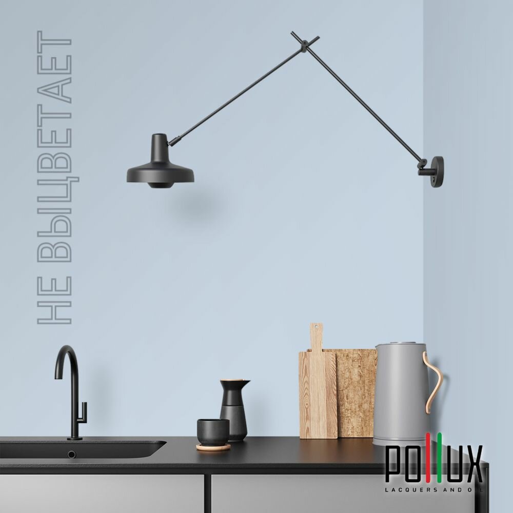 Краска моющаяся интерьерная для стен и потолков, Pollux INTERIOR без запаха, быстросохнущая, акриловая, матовое покрытие, цвет NCS S 7005-R80B, 1л.