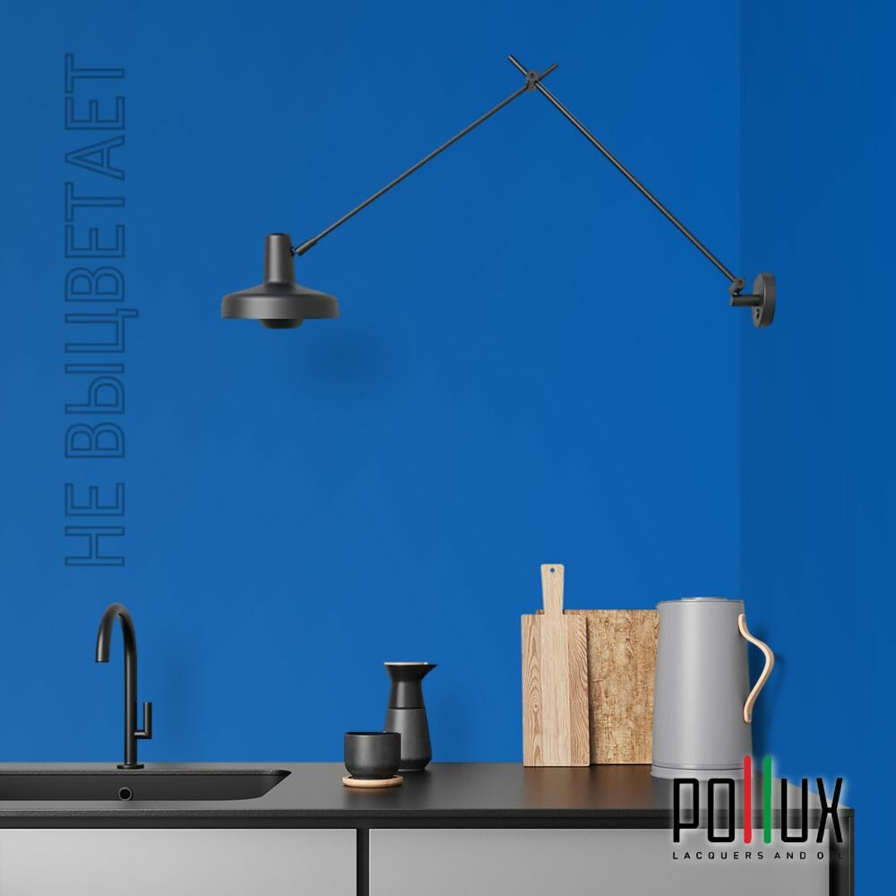 Краска моющаяся интерьерная для стен и потолков, Pollux INTERIOR без запаха, быстросохнущая, акриловая, матовое покрытие, цвет NCS S 4550-R80B, 1л.