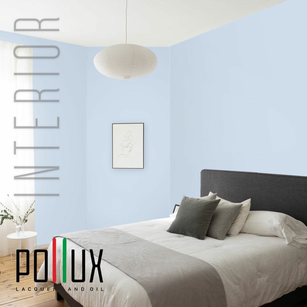 Краска моющаяся интерьерная для стен и потолков, Pollux INTERIOR без запаха, быстросохнущая, акриловая, матовое покрытие, цвет NCS S 2050-R80B, 1л.