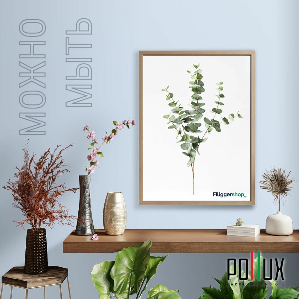 Краска моющаяся интерьерная для стен и потолков, Pollux INTERIOR без запаха, быстросохнущая, акриловая, матовое покрытие, цвет NCS S 4030-R80B, 1л.