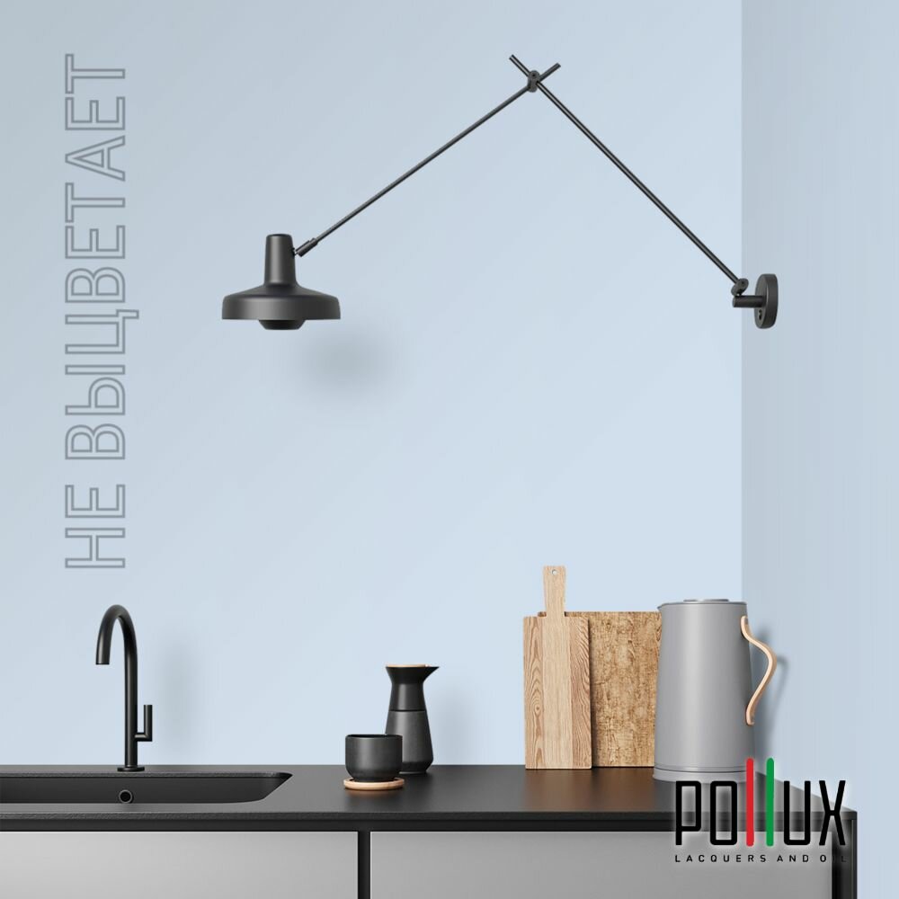 Краска моющаяся интерьерная для стен и потолков, Pollux INTERIOR без запаха, быстросохнущая, акриловая, матовое покрытие, цвет NCS S 4550-R80B, 1л.