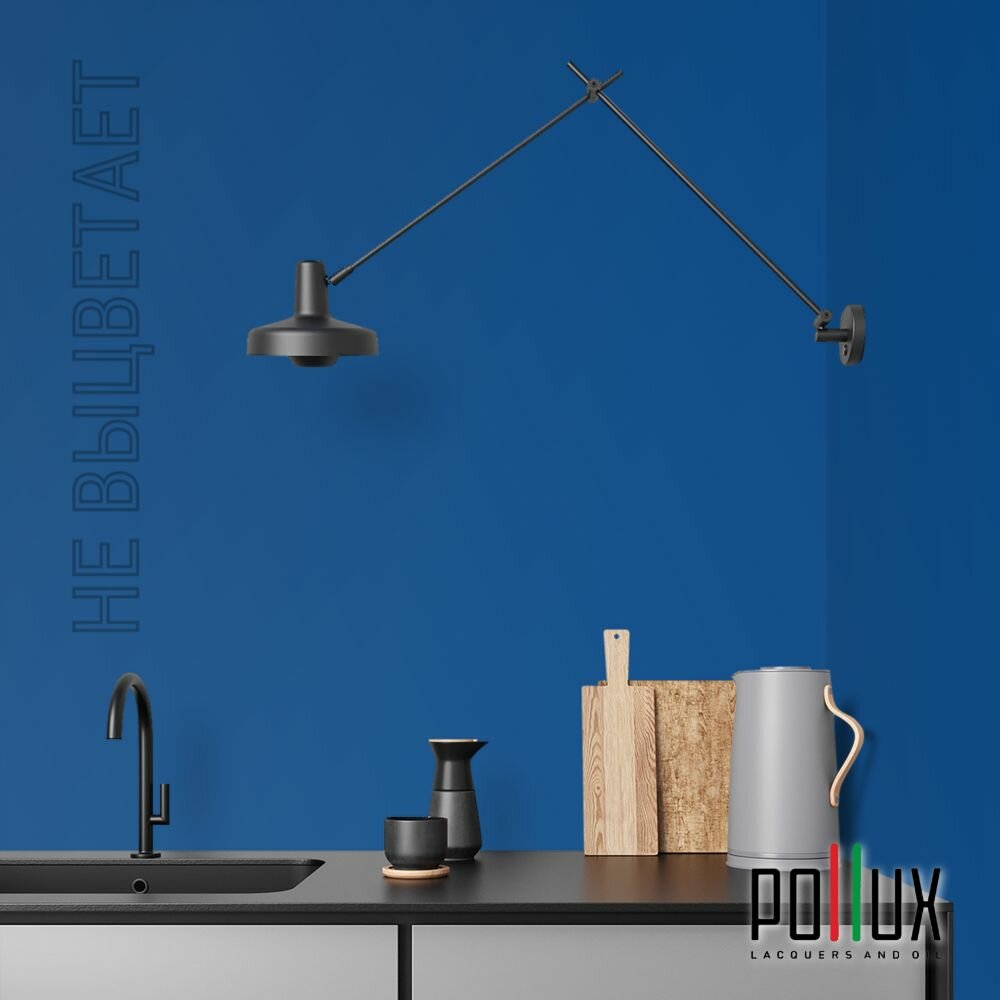 Краска моющаяся интерьерная для стен и потолков, Pollux INTERIOR без запаха, быстросохнущая, акриловая, матовое покрытие, цвет NCS S 4550-R80B, 1л.