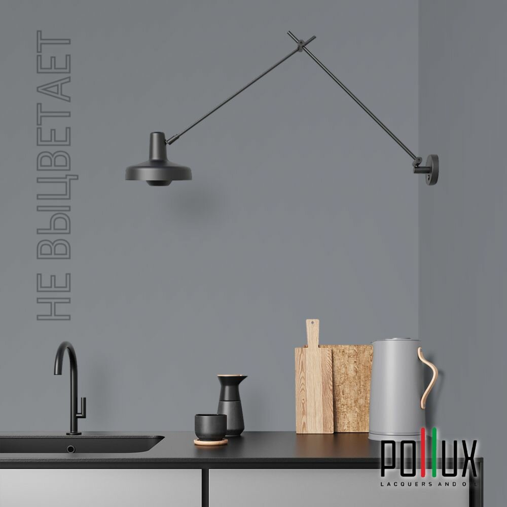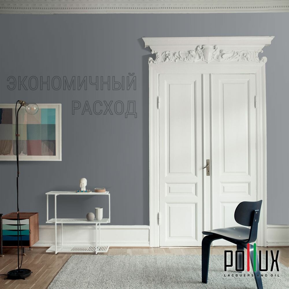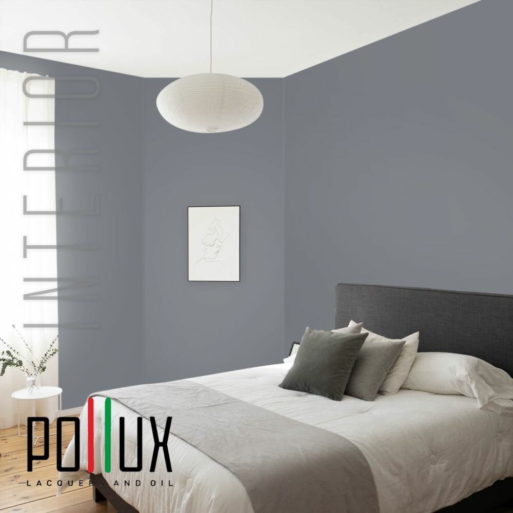 Краска моющаяся интерьерная для стен и потолков, Pollux INTERIOR без запаха, быстросохнущая, акриловая, матовое покрытие, цвет NCS S 7020-R80B, 1л.