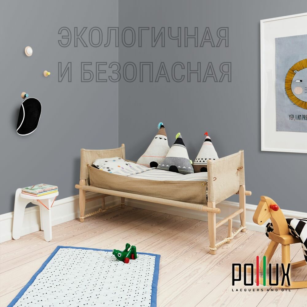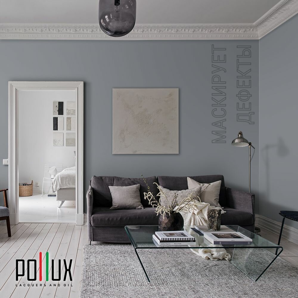 Краска моющаяся интерьерная для стен и потолков, Pollux INTERIOR без запаха, быстросохнущая, акриловая, матовое покрытие, цвет NCS S 7005-R80B, 1л.