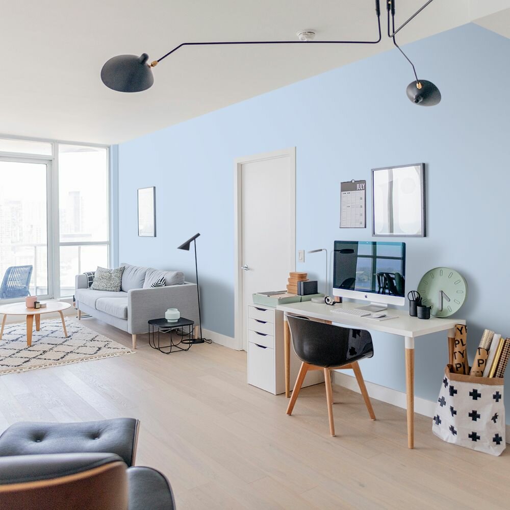 Краска моющаяся интерьерная для стен и потолков, Pollux INTERIOR без запаха, быстросохнущая, акриловая, матовое покрытие, цвет NCS S 4550-R80B, 1л.