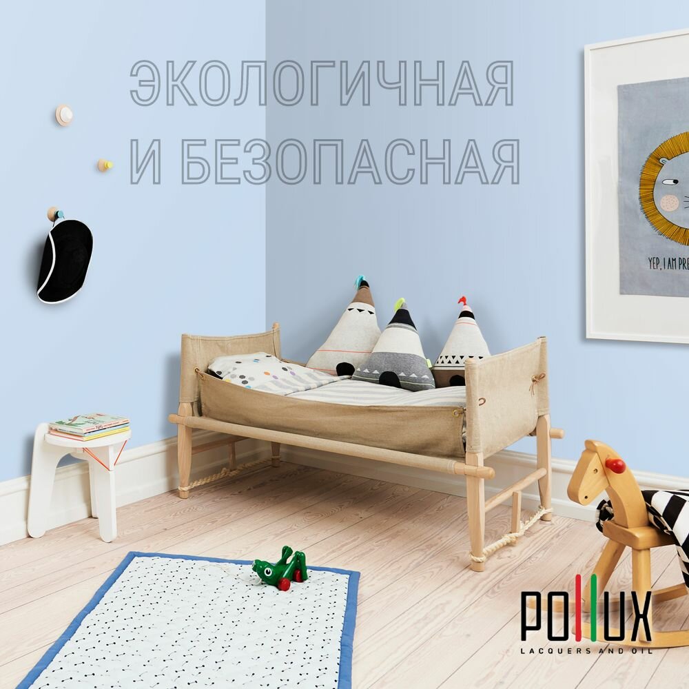 Краска моющаяся интерьерная для стен и потолков, Pollux INTERIOR без запаха, быстросохнущая, акриловая, матовое покрытие, цвет NCS S 0510-R80B, 1л.