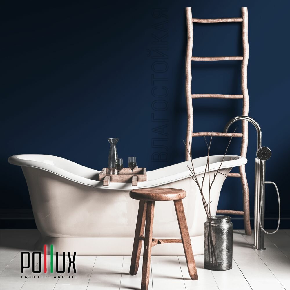 Краска моющаяся интерьерная для стен и потолков, Pollux INTERIOR без запаха, быстросохнущая, акриловая, матовое покрытие, цвет NCS S 4550-R80B, 1л.