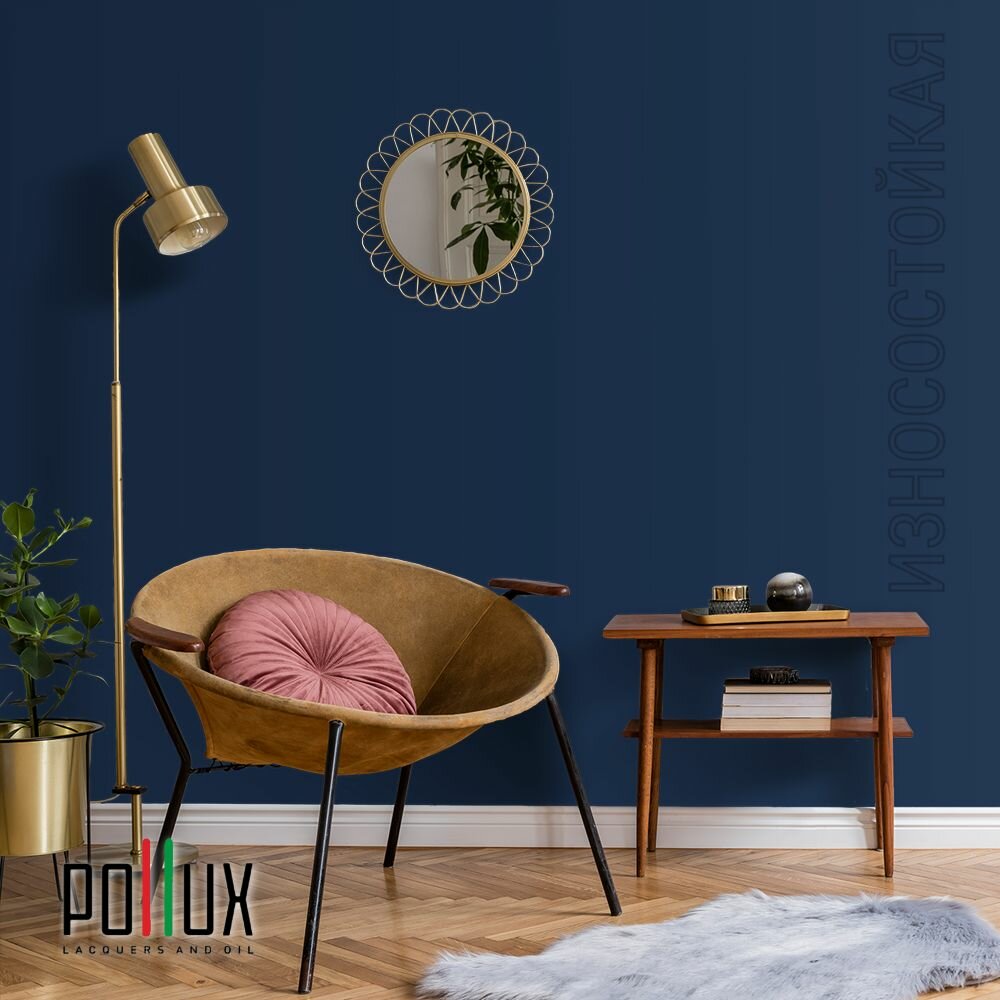Краска моющаяся интерьерная для стен и потолков, Pollux INTERIOR без запаха, быстросохнущая, акриловая, матовое покрытие, цвет NCS S 3005-R80B, 1л.