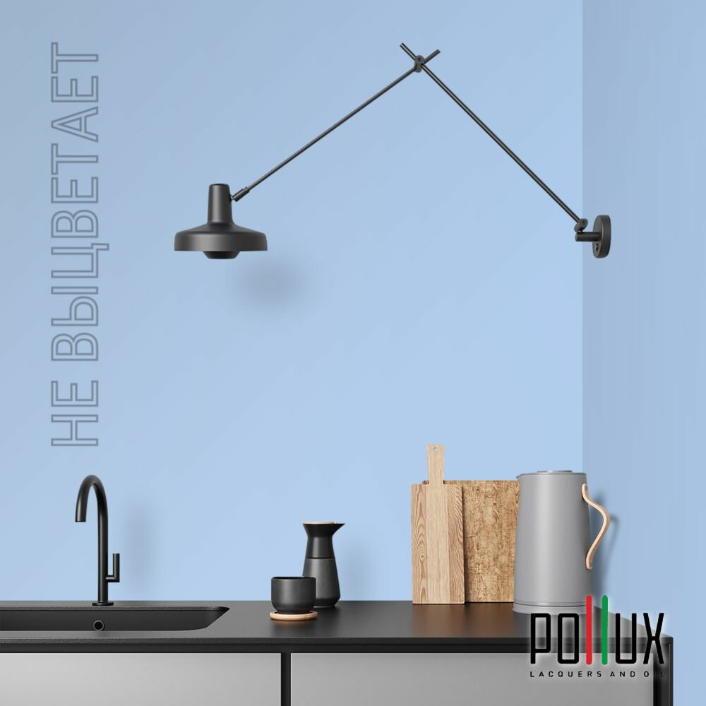 Краска моющаяся интерьерная для стен и потолков, Pollux INTERIOR без запаха, быстросохнущая, акриловая, матовое покрытие, цвет NCS S 4550-R80B, 1л.
