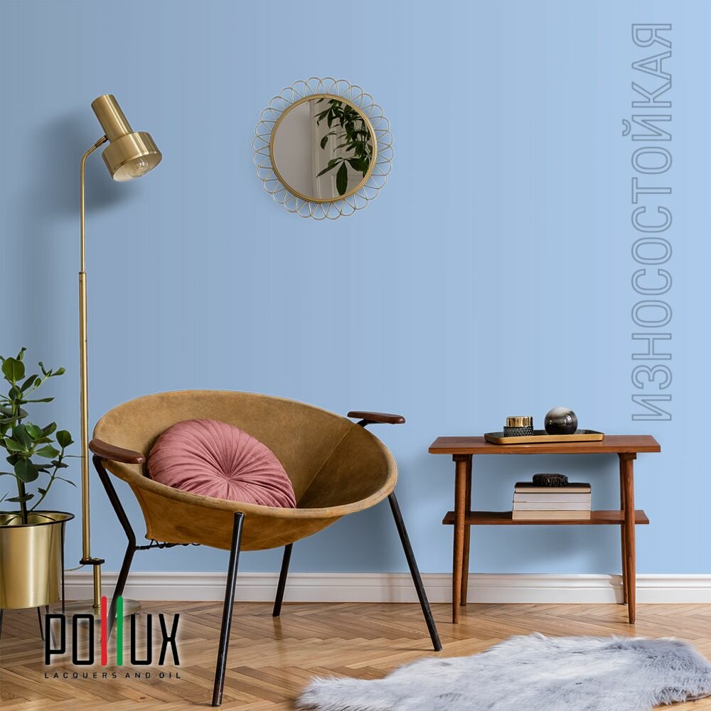 Краска моющаяся интерьерная для стен и потолков, Pollux INTERIOR без запаха, быстросохнущая, акриловая, матовое покрытие, цвет NCS S 2050-R80B, 1л.