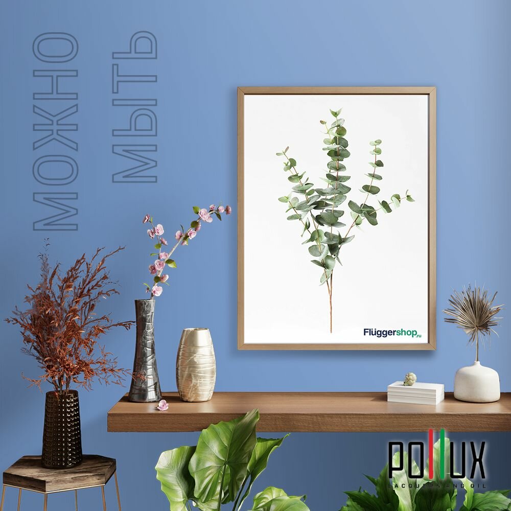 Краска моющаяся интерьерная для стен и потолков, Pollux INTERIOR без запаха, быстросохнущая, акриловая, матовое покрытие, цвет NCS S 4550-R80B, 1л.