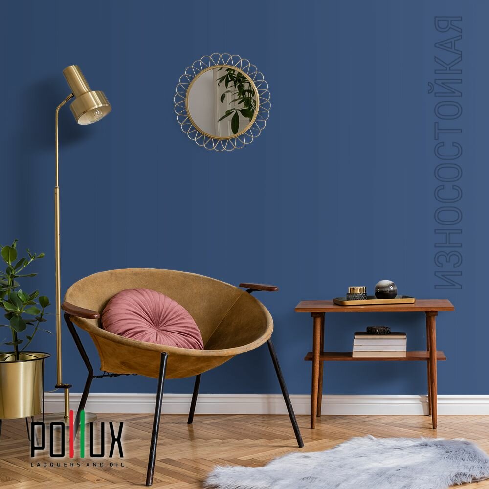 Краска моющаяся интерьерная для стен и потолков, Pollux INTERIOR без запаха, быстросохнущая, акриловая, матовое покрытие, цвет NCS S 3005-R80B, 1л.
