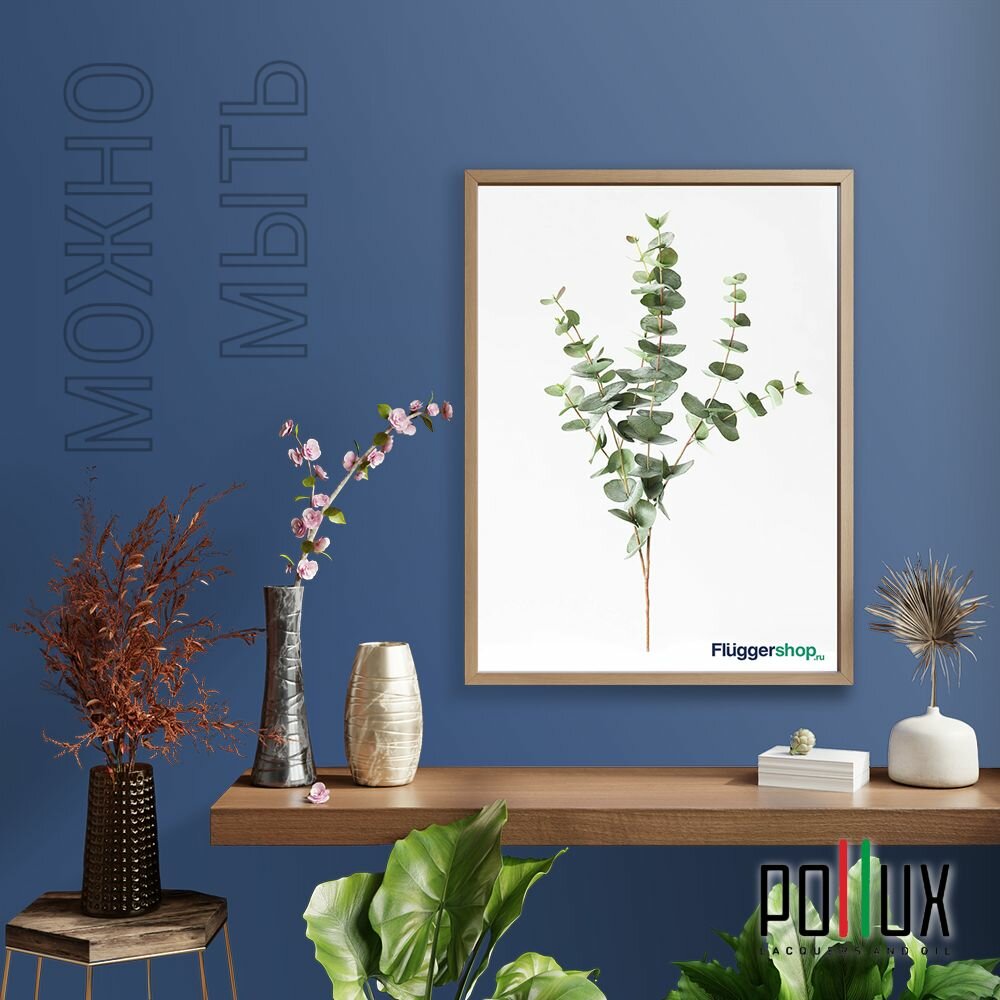 Краска моющаяся интерьерная для стен и потолков, Pollux INTERIOR без запаха, быстросохнущая, акриловая, матовое покрытие, цвет NCS S 4050-R80B, 1л.