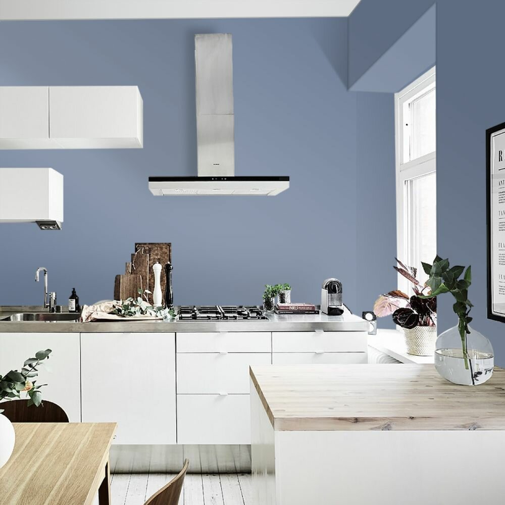 Краска моющаяся интерьерная для стен и потолков, Pollux INTERIOR без запаха, быстросохнущая, акриловая, матовое покрытие, цвет NCS S 4050-R80B, 1л.