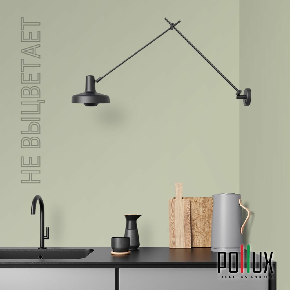 Краска моющаяся интерьерная для стен и потолков, Pollux INTERIOR без запаха, быстросохнущая, акриловая, матовое покрытие, цвет NCS S 0907-G60Y, 1л.