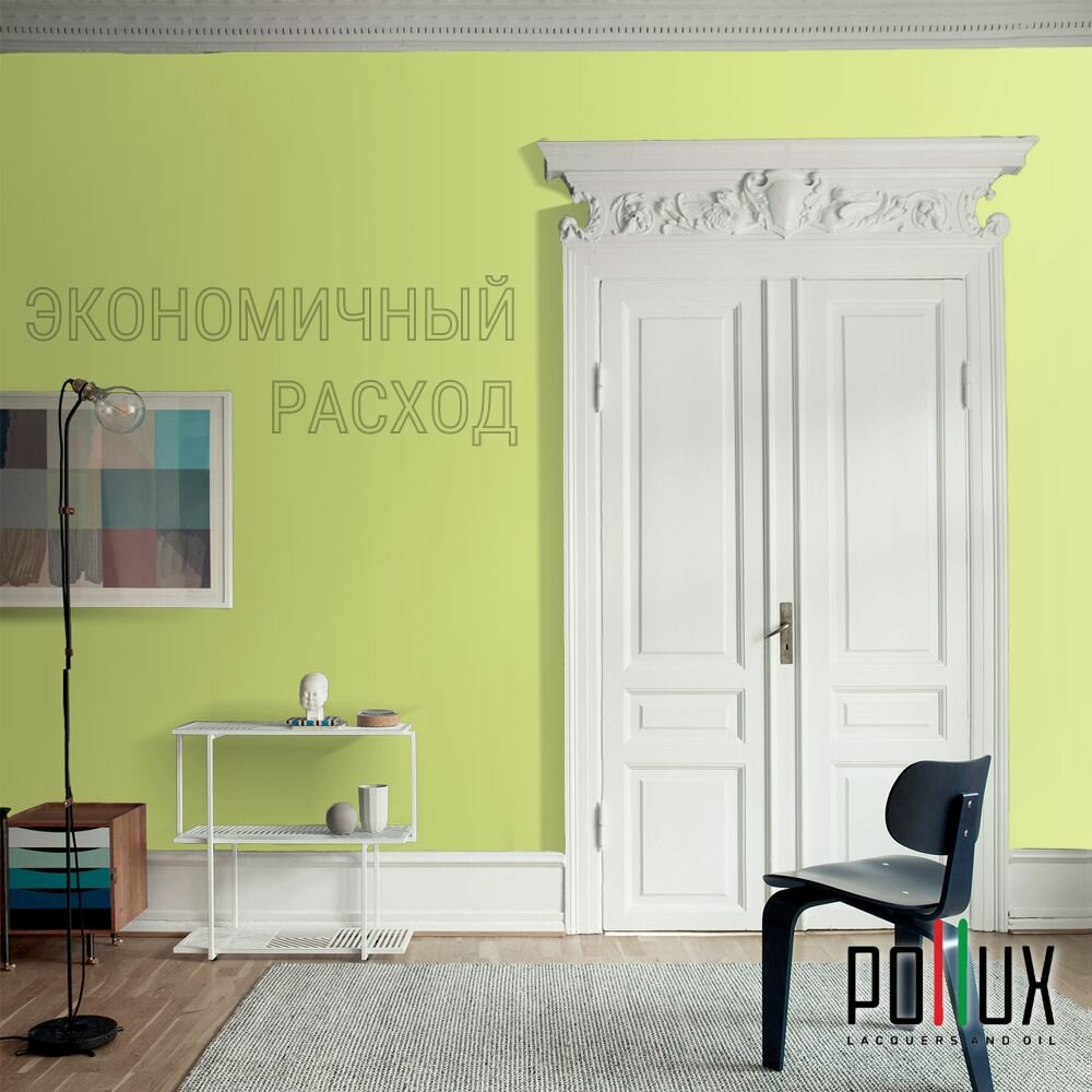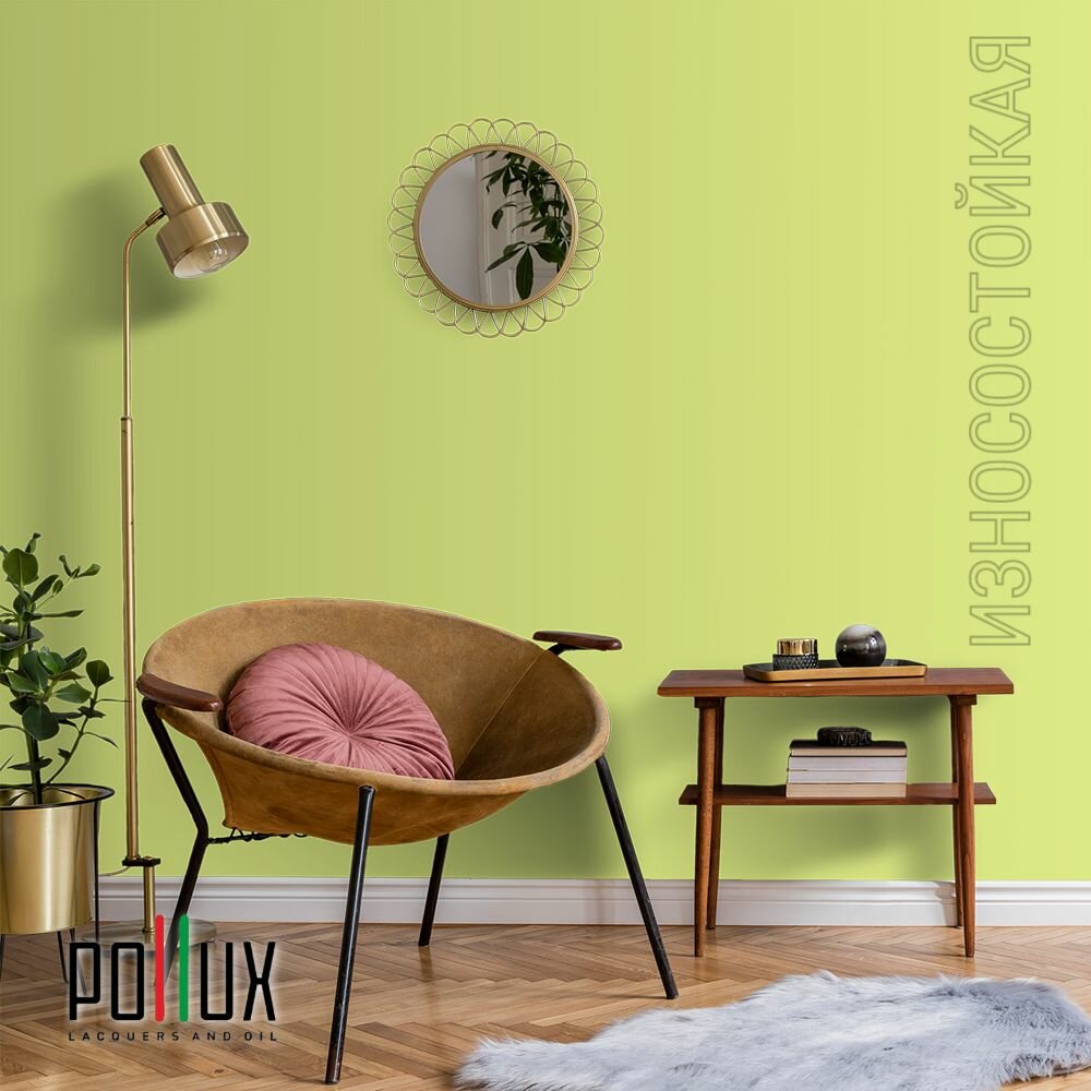Краска моющаяся интерьерная для стен и потолков, Pollux INTERIOR без запаха, быстросохнущая, акриловая, матовое покрытие, цвет NCS S 1040-G60Y, 1л.