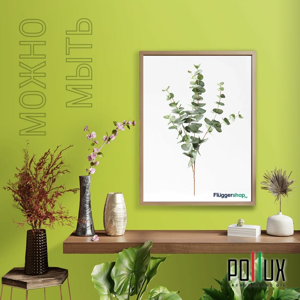 Краска моющаяся интерьерная для стен и потолков, Pollux INTERIOR без запаха, быстросохнущая, акриловая, матовое покрытие, цвет NCS S 5540-G60Y, 1л.