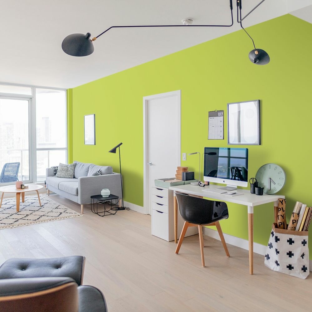 Краска моющаяся интерьерная для стен и потолков, Pollux INTERIOR без запаха, быстросохнущая, акриловая, матовое покрытие, цвет NCS S 0575-G60Y, 1л.
