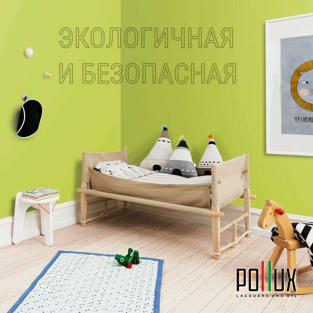 Краска моющаяся интерьерная для стен и потолков, Pollux INTERIOR без запаха, быстросохнущая, акриловая, матовое покрытие, цвет NCS S 1510-G60Y, 1л.