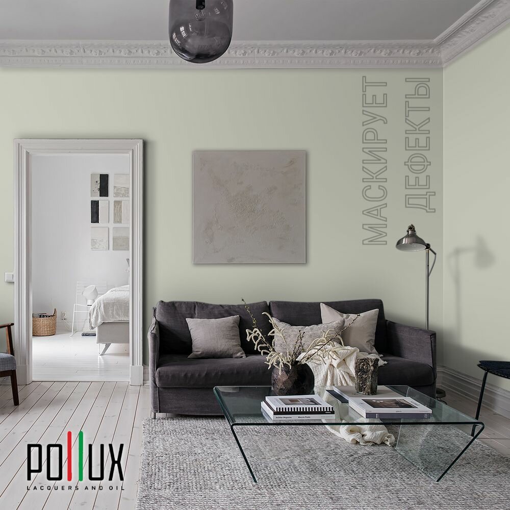 Краска моющаяся интерьерная для стен и потолков, Pollux INTERIOR без запаха, быстросохнущая, акриловая, матовое покрытие, цвет NCS S 0907-G60Y, 1л.