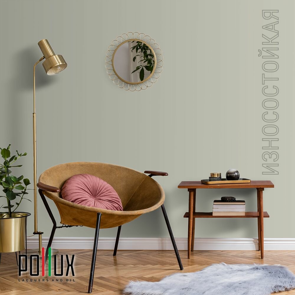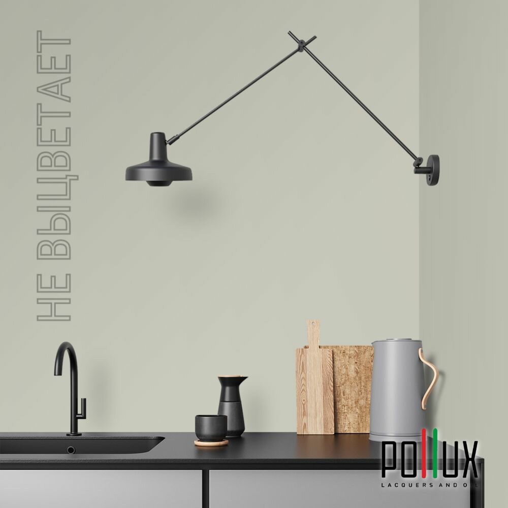 Краска моющаяся интерьерная для стен и потолков, Pollux INTERIOR без запаха, быстросохнущая, акриловая, матовое покрытие, цвет NCS S 4050-G60Y, 1л.