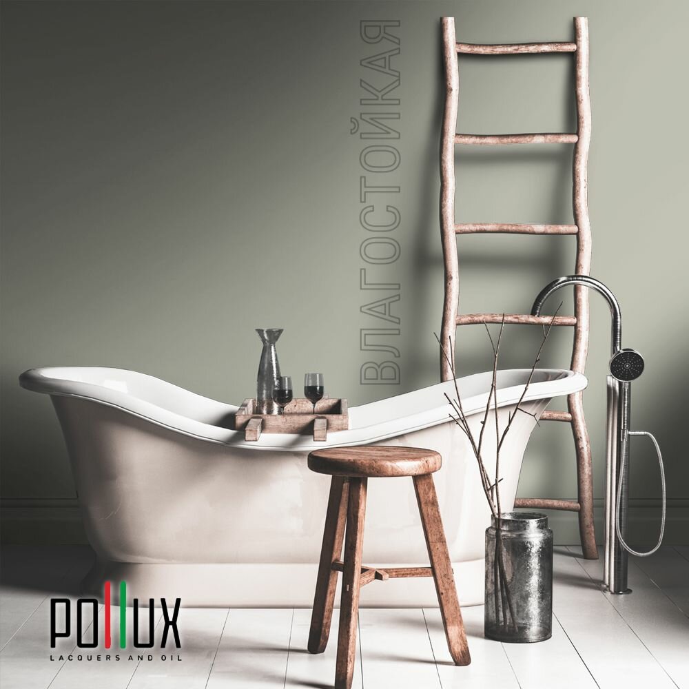 Краска моющаяся интерьерная для стен и потолков, Pollux INTERIOR без запаха, быстросохнущая, акриловая, матовое покрытие, цвет NCS S 1040-R50B, 1л.