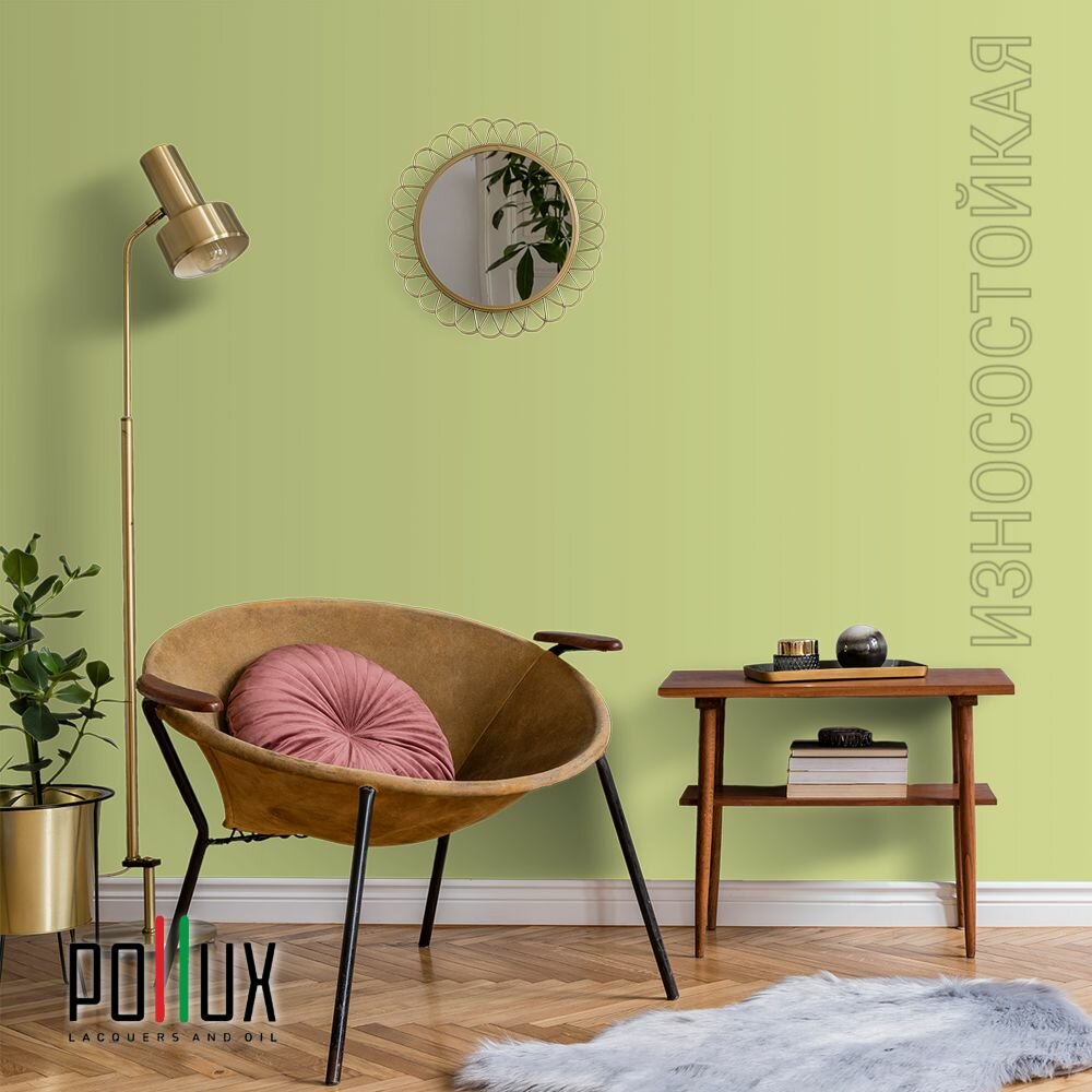 Краска моющаяся интерьерная для стен и потолков, Pollux INTERIOR без запаха, быстросохнущая, акриловая, матовое покрытие, цвет NCS S 3030-G60Y, 1л.