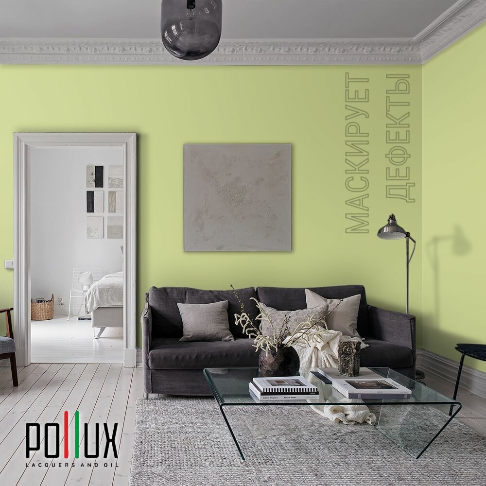 Краска моющаяся интерьерная для стен и потолков, Pollux INTERIOR без запаха, быстросохнущая, акриловая, матовое покрытие, цвет NCS S 1020-G60Y, 1л.