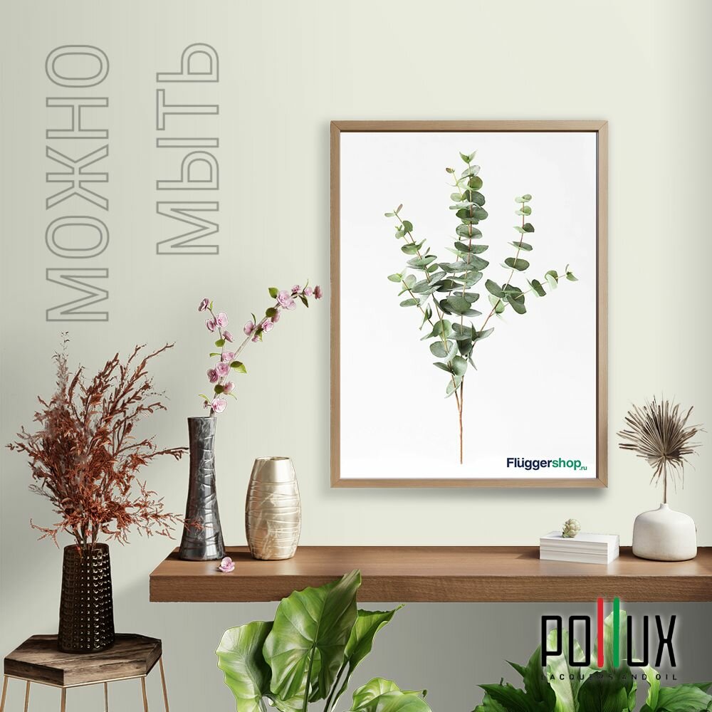 Краска моющаяся интерьерная для стен и потолков, Pollux INTERIOR без запаха, быстросохнущая, акриловая, матовое покрытие, цвет NCS S 4050-G60Y, 1л.