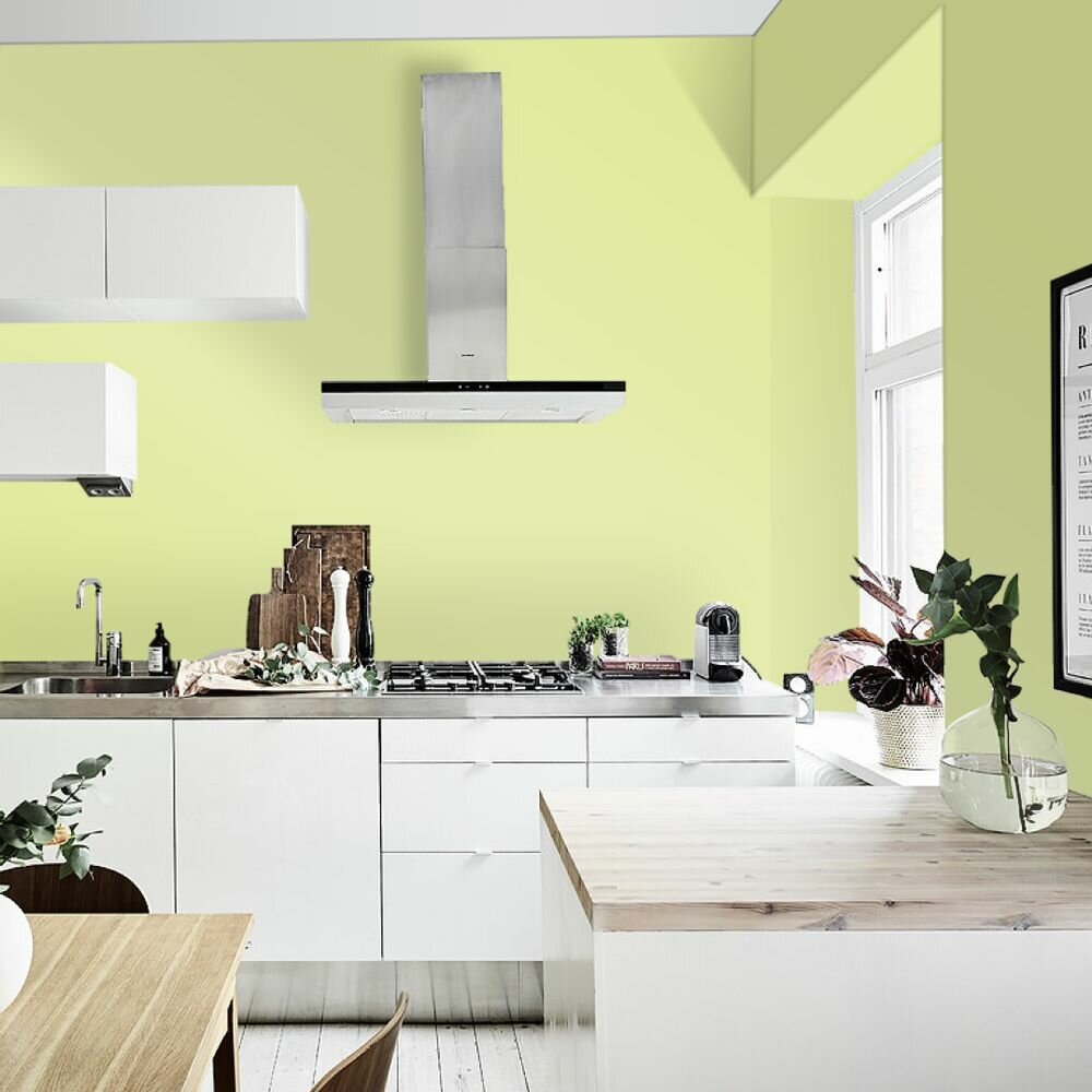 Краска моющаяся интерьерная для стен и потолков, Pollux INTERIOR без запаха, быстросохнущая, акриловая, матовое покрытие, цвет NCS S 0520-G60Y, 1л.