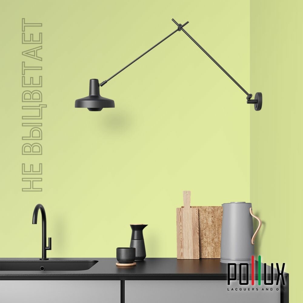 Краска моющаяся интерьерная для стен и потолков, Pollux INTERIOR без запаха, быстросохнущая, акриловая, матовое покрытие, цвет NCS S 0510-G60Y, 1л.