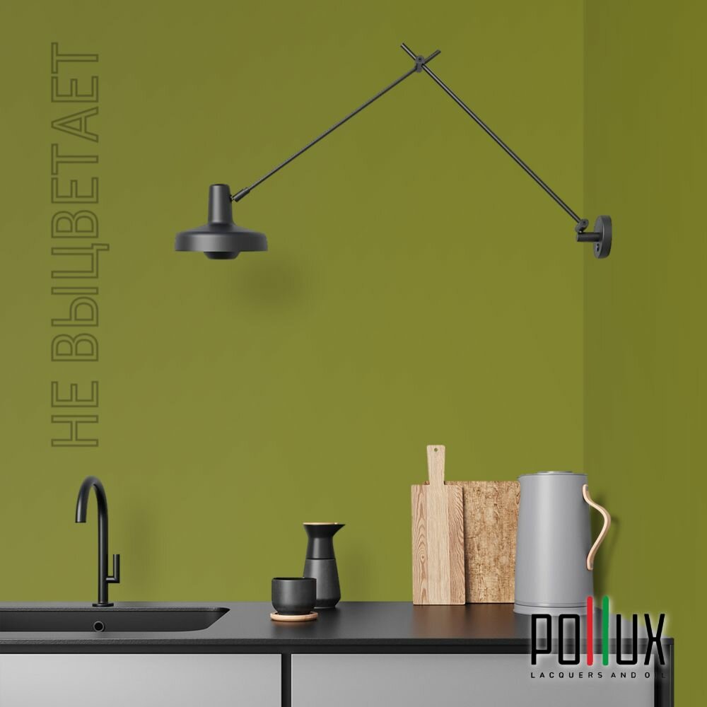 Краска моющаяся интерьерная для стен и потолков, Pollux INTERIOR без запаха, быстросохнущая, акриловая, матовое покрытие, цвет NCS S 3020-G60Y, 1л.