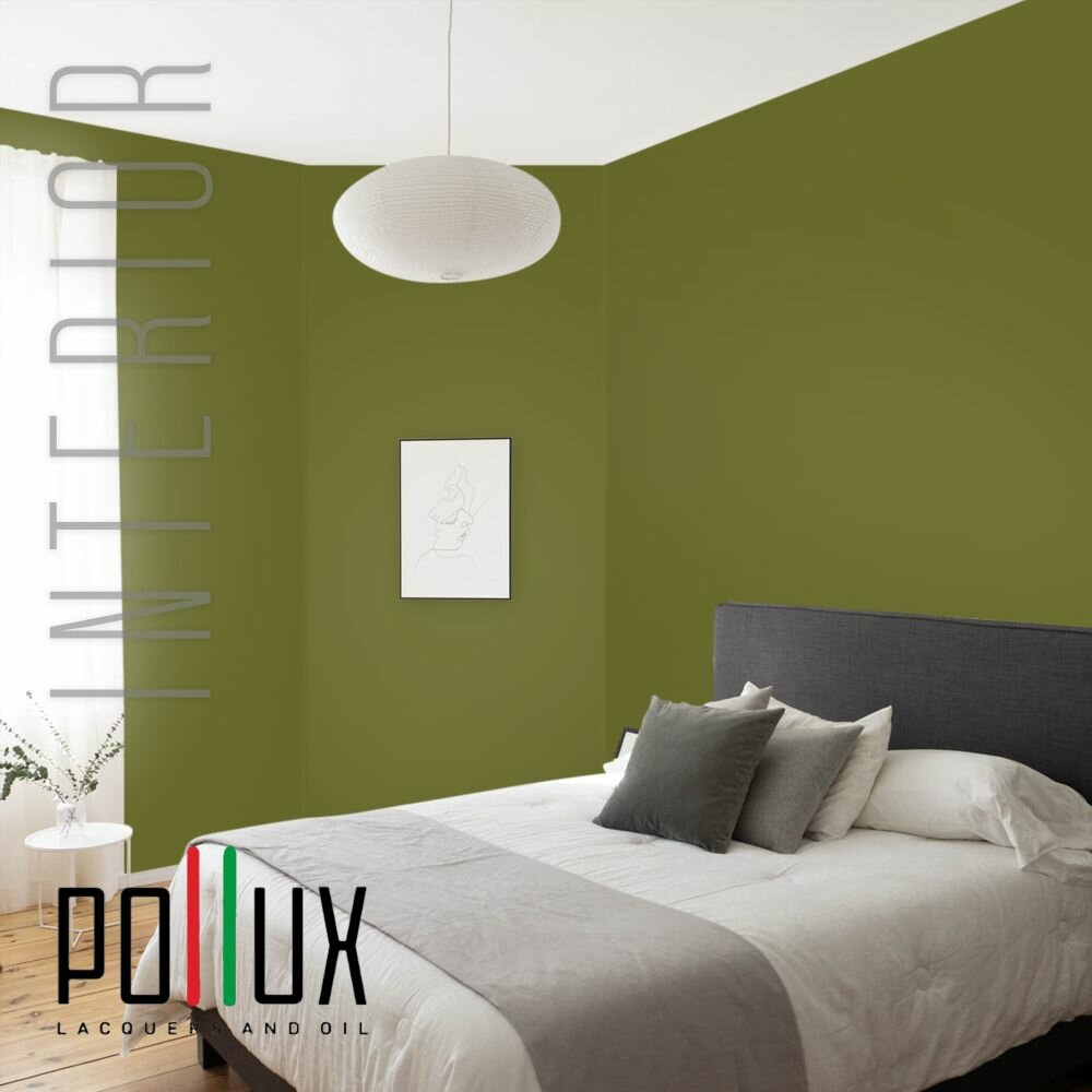 Краска моющаяся интерьерная для стен и потолков, Pollux INTERIOR без запаха, быстросохнущая, акриловая, матовое покрытие, цвет NCS S 1040-G60Y, 1л.