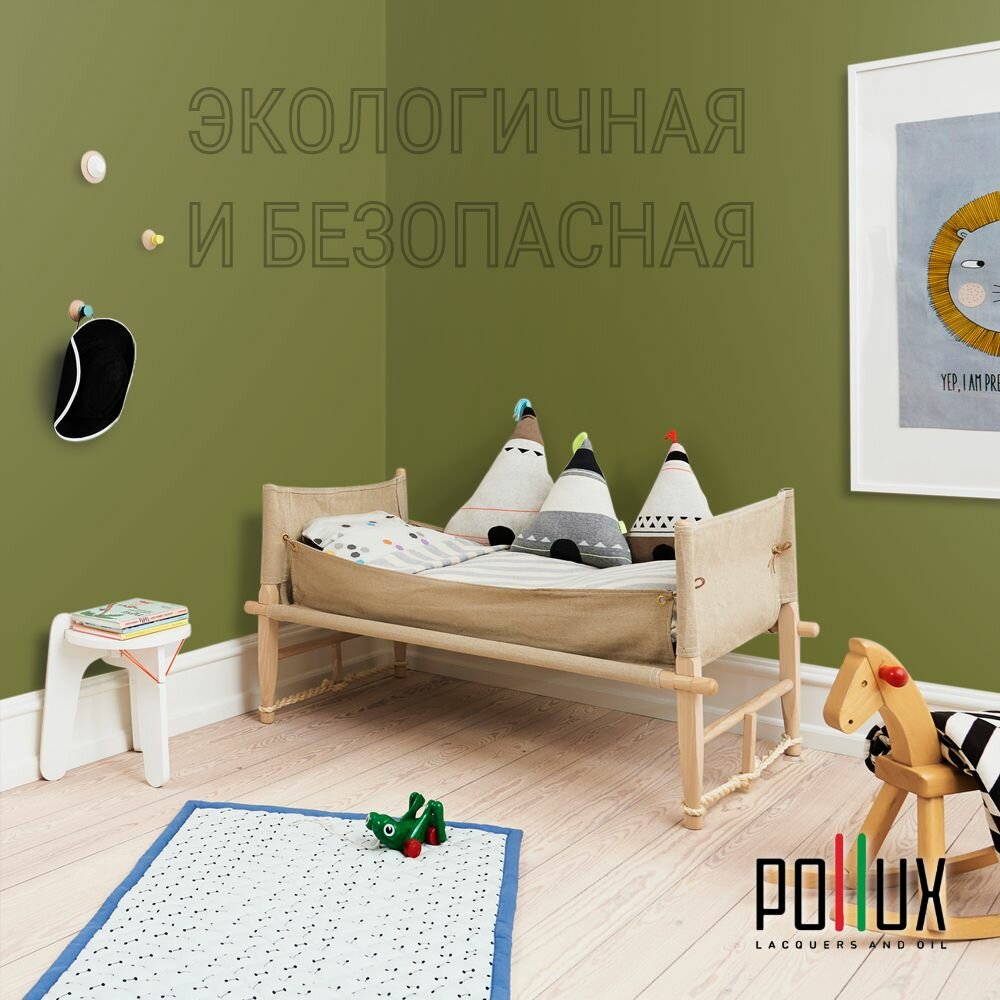Краска моющаяся интерьерная для стен и потолков, Pollux INTERIOR без запаха, быстросохнущая, акриловая, матовое покрытие, цвет NCS S 5540-G60Y, 1л.