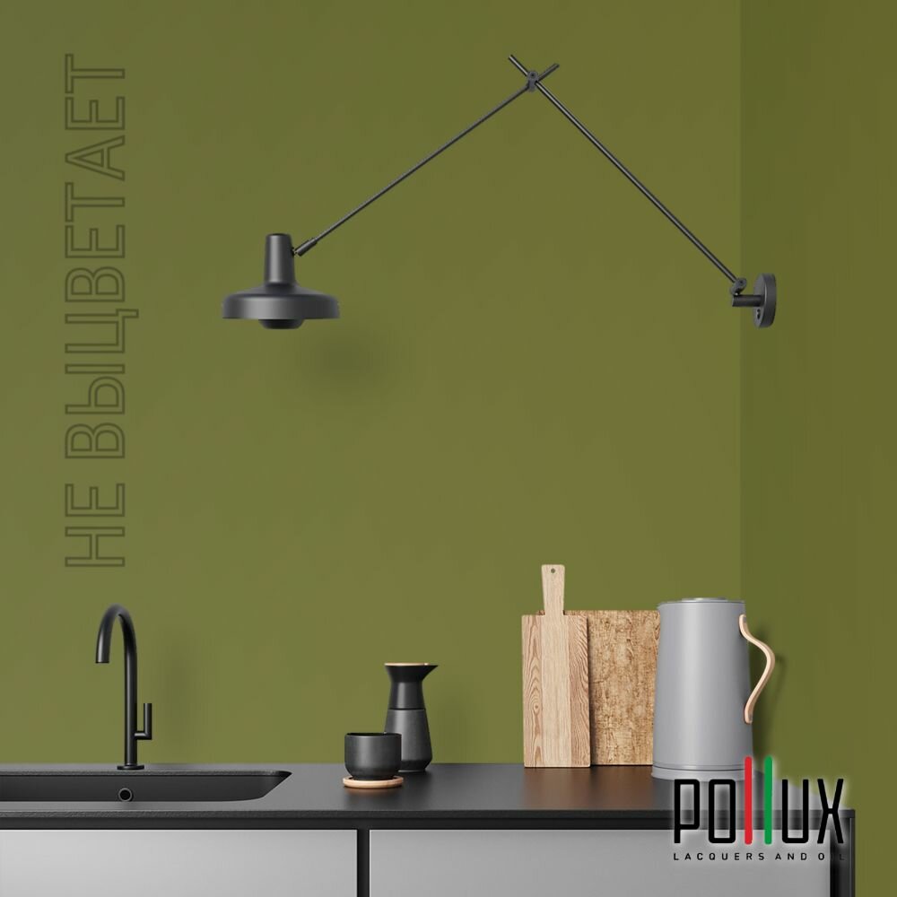 Краска моющаяся интерьерная для стен и потолков, Pollux INTERIOR без запаха, быстросохнущая, акриловая, матовое покрытие, цвет NCS S 4550-G60Y, 1л.