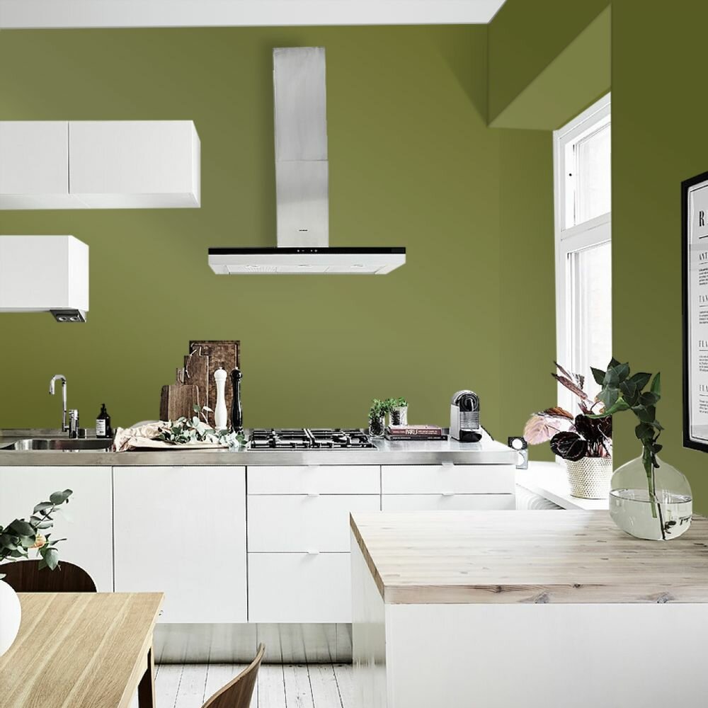 Краска моющаяся интерьерная для стен и потолков, Pollux INTERIOR без запаха, быстросохнущая, акриловая, матовое покрытие, цвет NCS S 3560-G60Y, 1л.