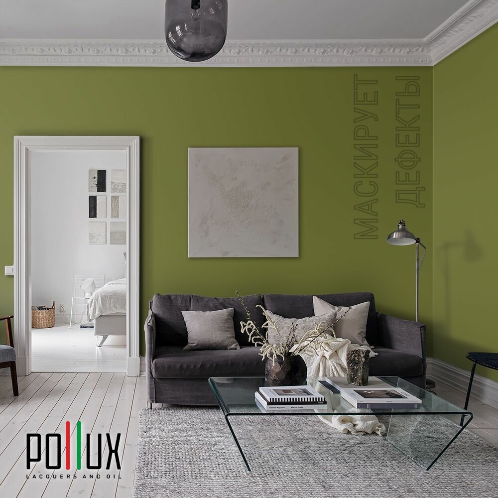 Краска моющаяся интерьерная для стен и потолков, Pollux INTERIOR без запаха, быстросохнущая, акриловая, матовое покрытие, цвет NCS S 3030-G60Y, 1л.