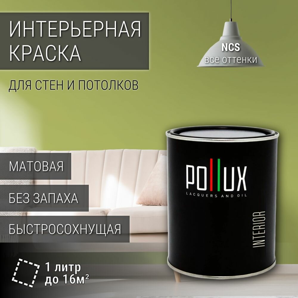 Краска моющаяся интерьерная для стен и потолков, Pollux INTERIOR без запаха, быстросохнущая, акриловая, матовое покрытие, цвет NCS S 3020-G60Y, 1л.