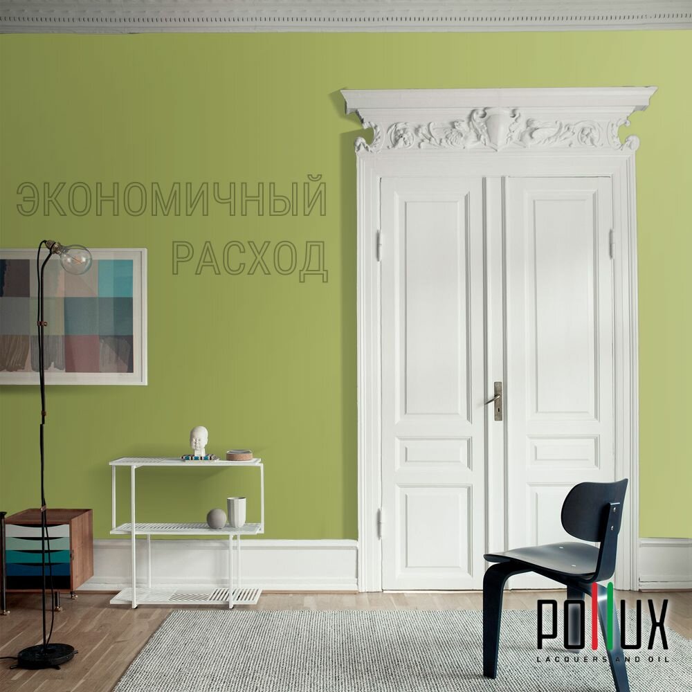 Краска моющаяся интерьерная для стен и потолков, Pollux INTERIOR без запаха, быстросохнущая, акриловая, матовое покрытие, цвет NCS S 1040-G60Y, 1л.