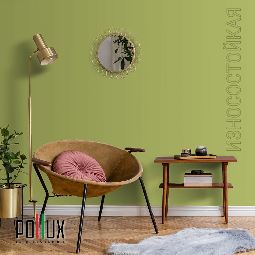 Краска моющаяся интерьерная для стен и потолков, Pollux INTERIOR без запаха, быстросохнущая, акриловая, матовое покрытие, цвет NCS S 3060-G60Y, 1л.