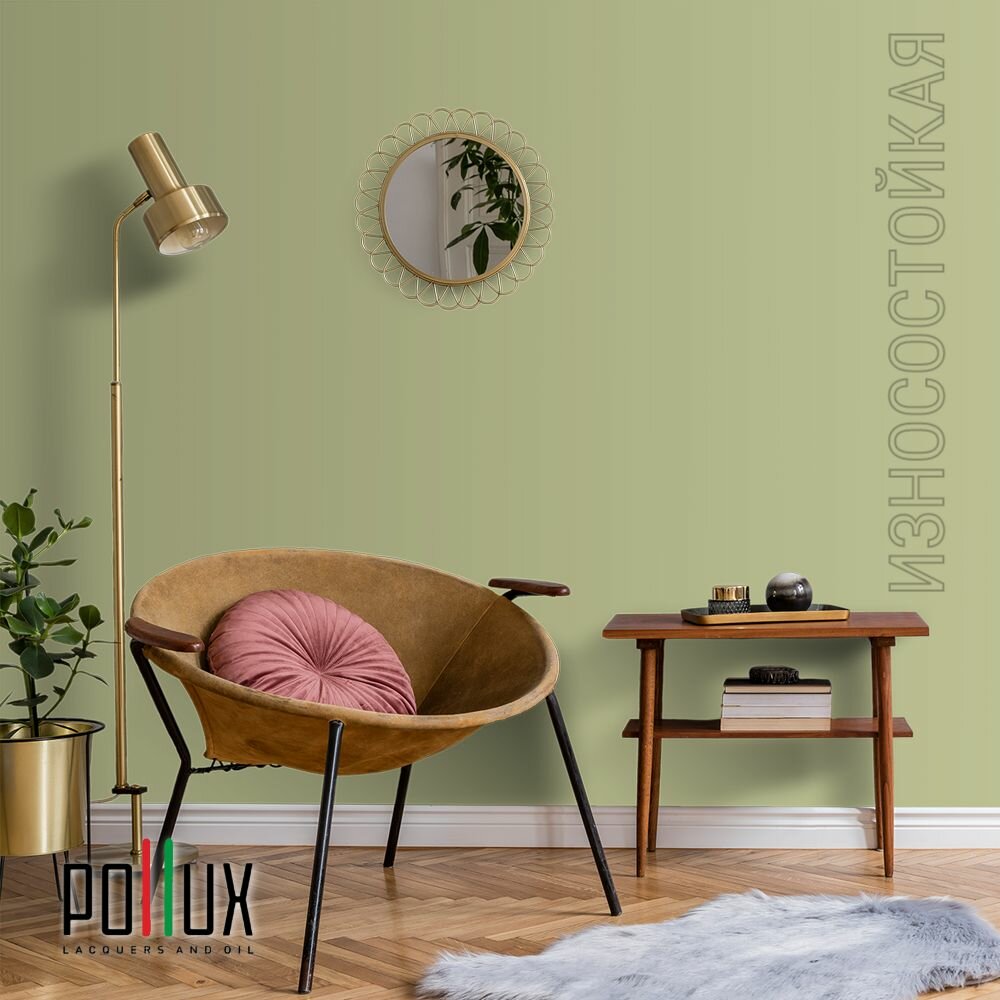 Краска моющаяся интерьерная для стен и потолков, Pollux INTERIOR без запаха, быстросохнущая, акриловая, матовое покрытие, цвет NCS S 1040-G60Y, 1л.