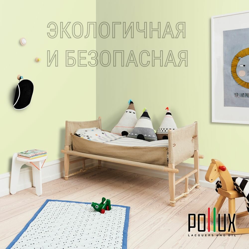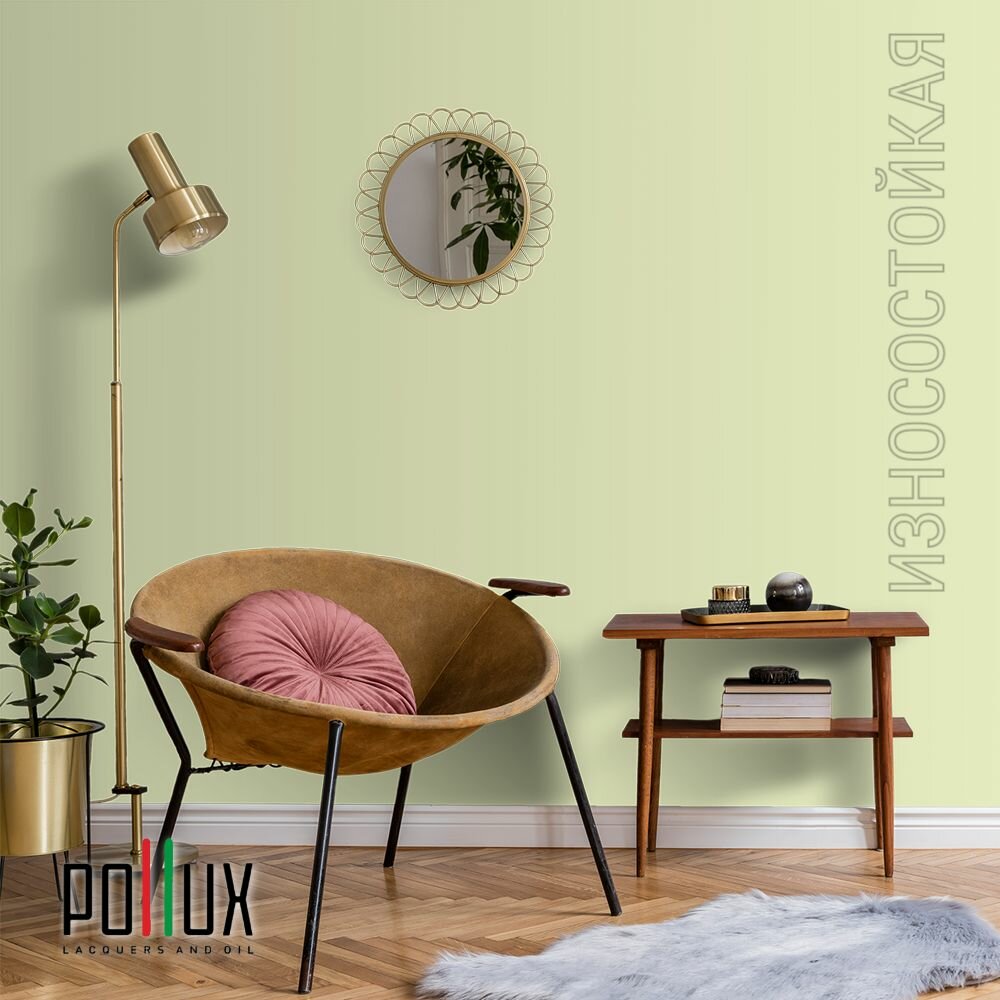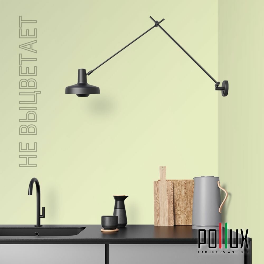 Краска моющаяся интерьерная для стен и потолков, Pollux INTERIOR без запаха, быстросохнущая, акриловая, матовое покрытие, цвет NCS S 1510-G60Y, 1л.