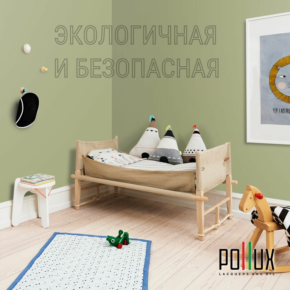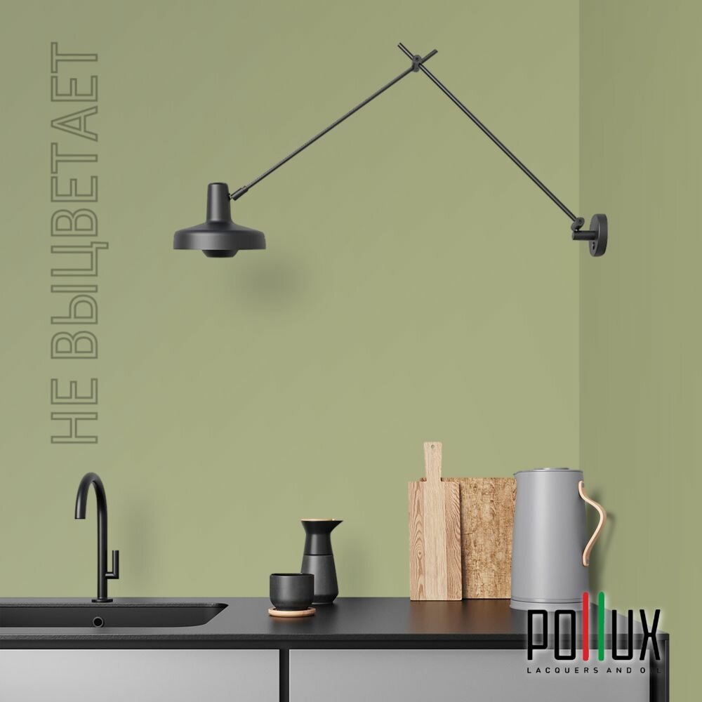 Краска моющаяся интерьерная для стен и потолков, Pollux INTERIOR без запаха, быстросохнущая, акриловая, матовое покрытие, цвет NCS S 4550-G60Y, 1л.