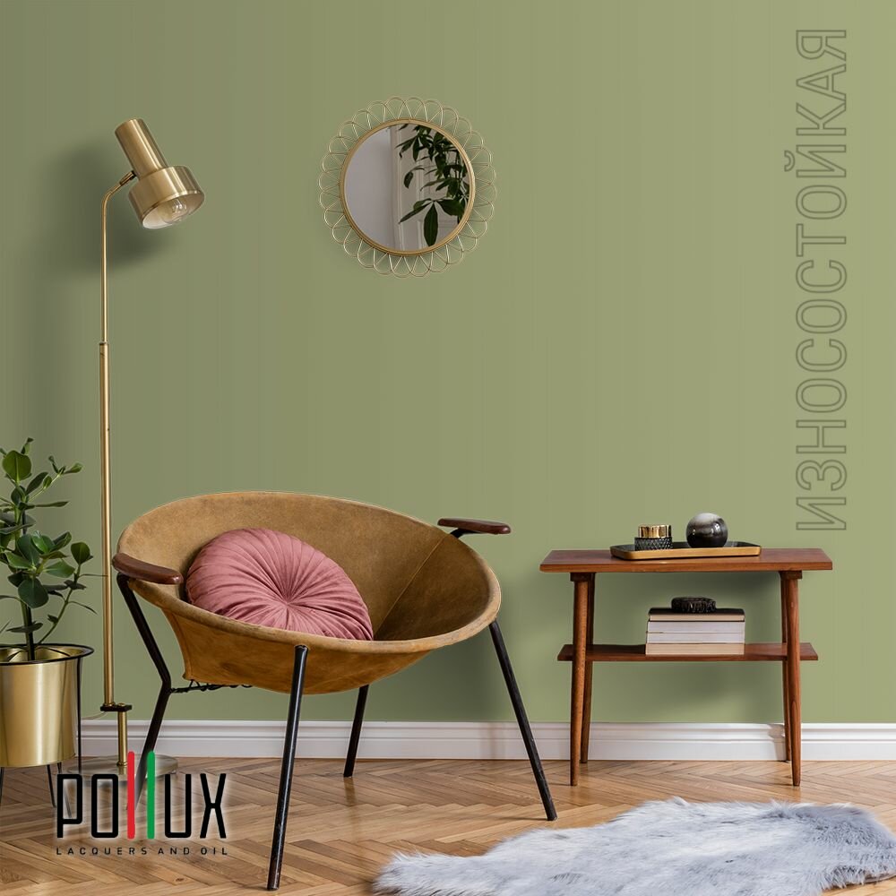 Краска моющаяся интерьерная для стен и потолков, Pollux INTERIOR без запаха, быстросохнущая, акриловая, матовое покрытие, цвет NCS S 3030-G60Y, 1л.