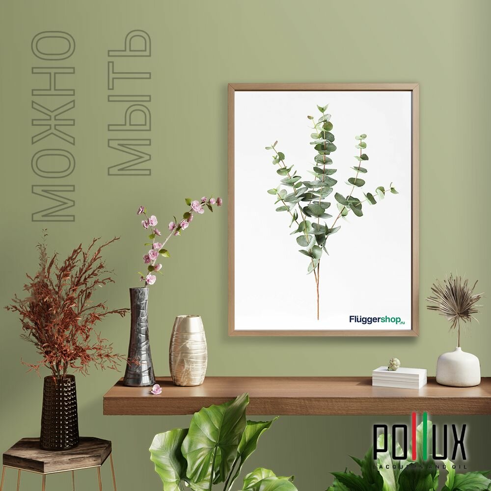Краска моющаяся интерьерная для стен и потолков, Pollux INTERIOR без запаха, быстросохнущая, акриловая, матовое покрытие, цвет NCS S 5540-G60Y, 1л.