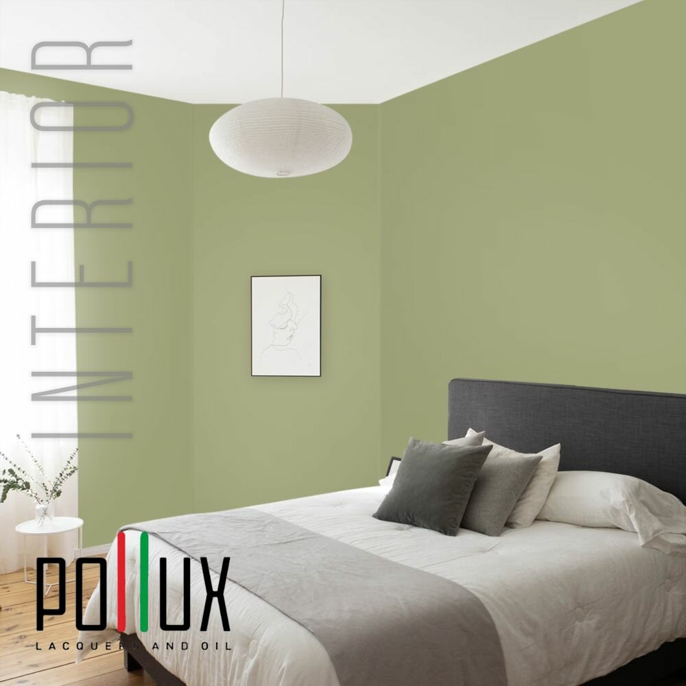 Краска моющаяся интерьерная для стен и потолков, Pollux INTERIOR без запаха, быстросохнущая, акриловая, матовое покрытие, цвет NCS S 1040-G60Y, 1л.