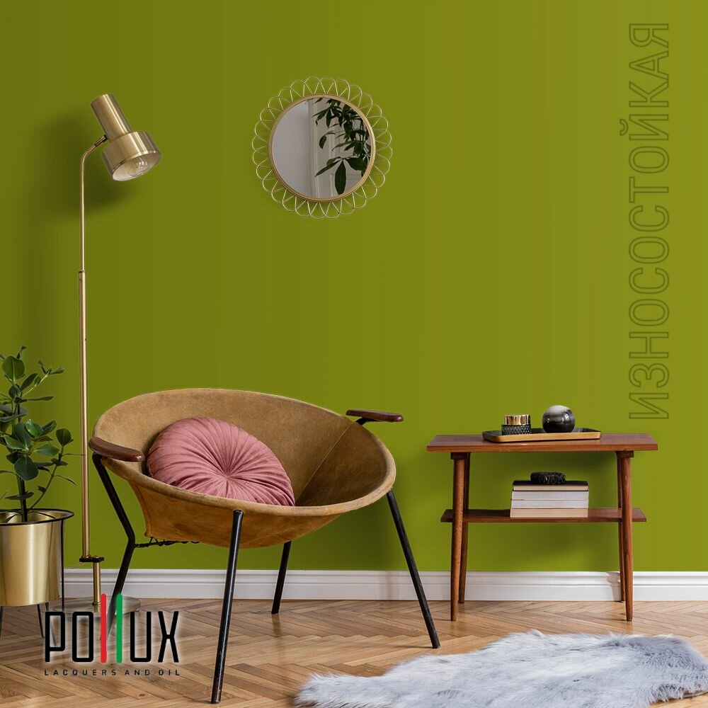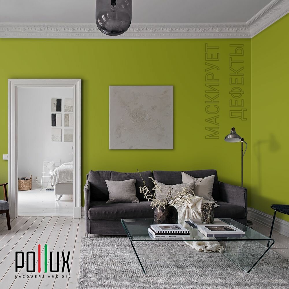 Краска моющаяся интерьерная для стен и потолков, Pollux INTERIOR без запаха, быстросохнущая, акриловая, матовое покрытие, цвет NCS S 3060-G60Y, 1л.