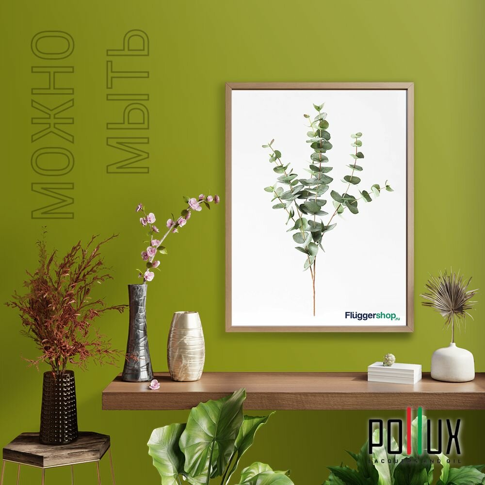 Краска моющаяся интерьерная для стен и потолков, Pollux INTERIOR без запаха, быстросохнущая, акриловая, матовое покрытие, цвет NCS S 5540-G60Y, 1л.