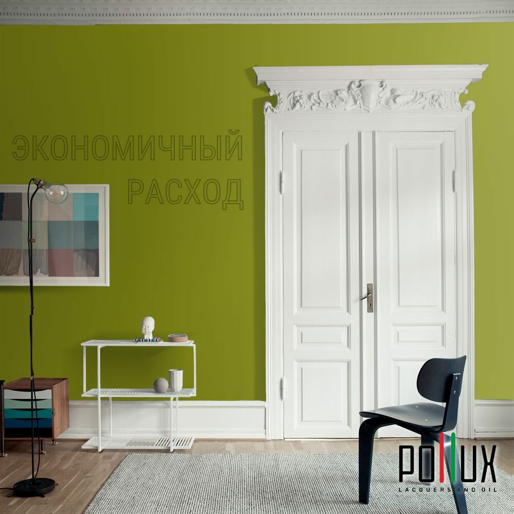 Краска моющаяся интерьерная для стен и потолков, Pollux INTERIOR без запаха, быстросохнущая, акриловая, матовое покрытие, цвет NCS S 1040-G60Y, 1л.