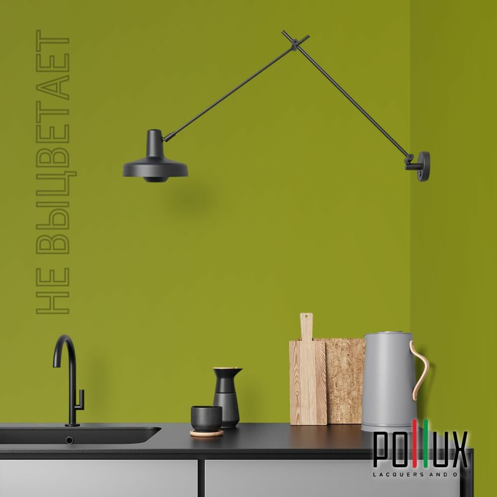 Краска моющаяся интерьерная для стен и потолков, Pollux INTERIOR без запаха, быстросохнущая, акриловая, матовое покрытие, цвет NCS S 1510-G60Y, 1л.